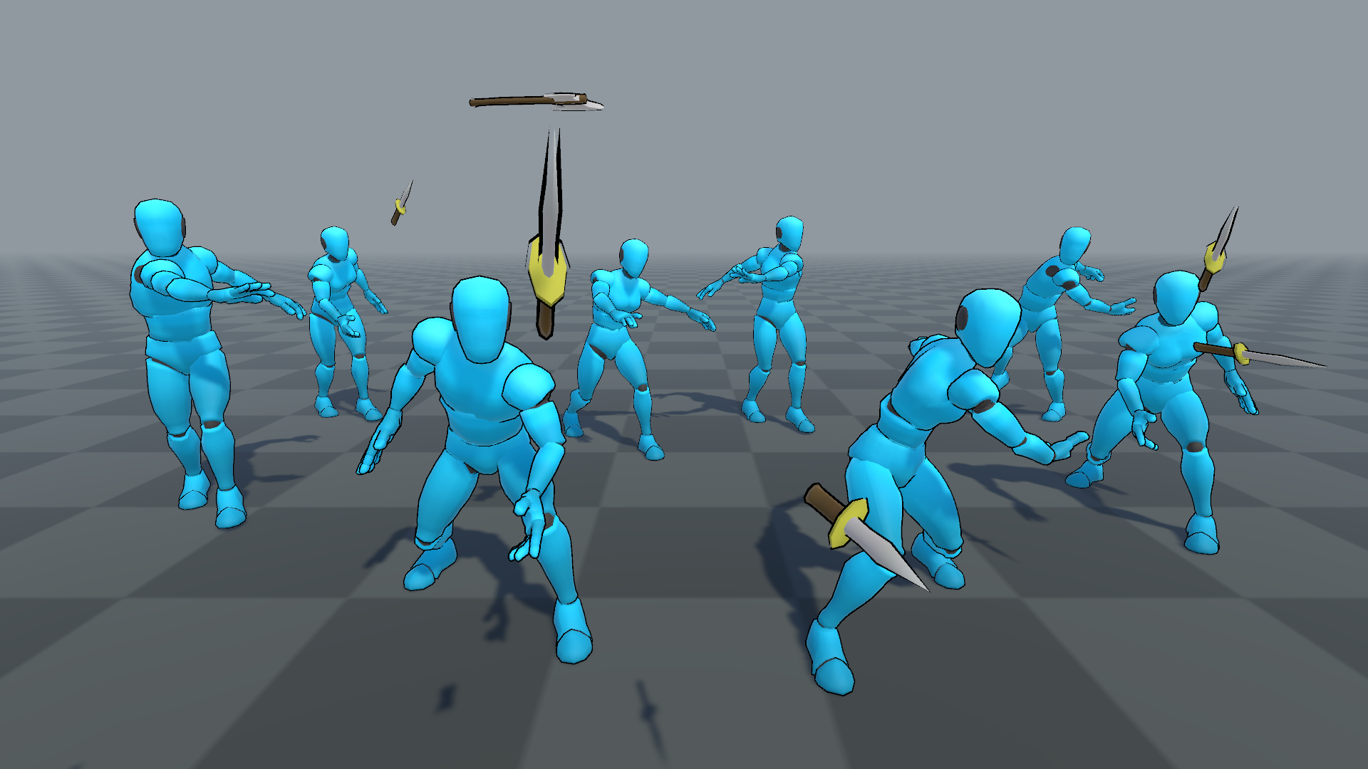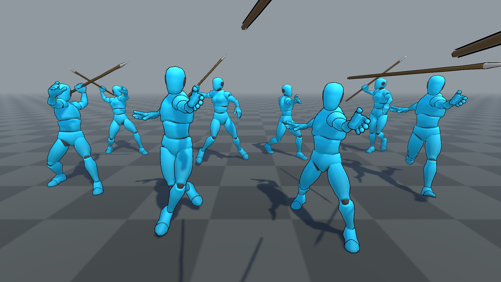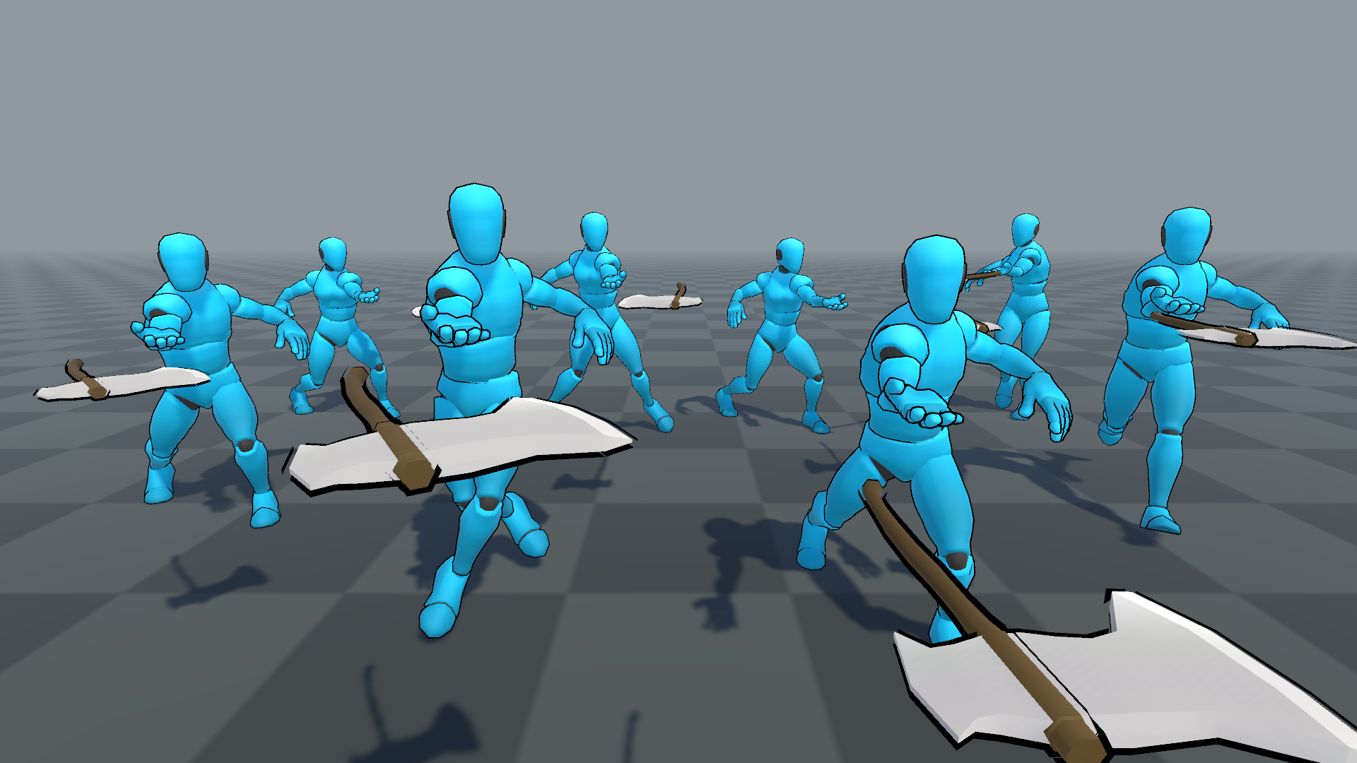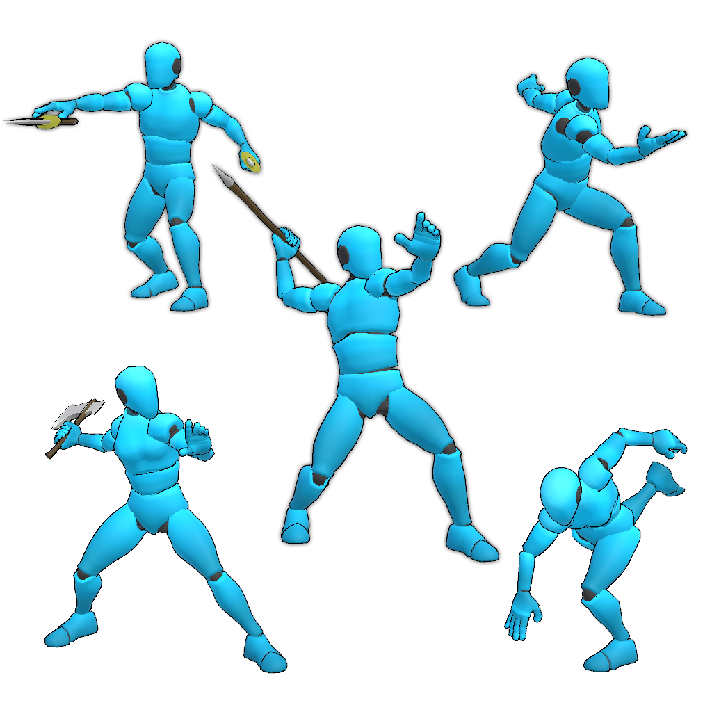 - Walk (8 directions, 2 m/s, root motion and in-place)